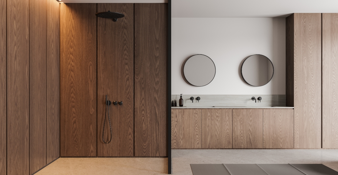 - Bathroom vanities featuring moisture-resistant finishes